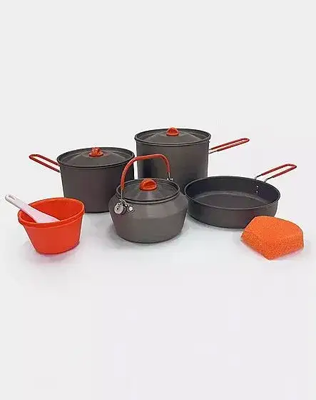 ערכה קומפקטית וקלה מבית "Outdoor Revolution" שתהפוך כל בישול בשטח לחווייה. הערכה מתאימה לחמישה אנשים וכוללת שני סירים עמידים במיוחד בעלי הגנה נגד הדבקויות, מחבת, קומקום ושתי קעריות וספוג לניקוי ושימוש יעילמחיר רגיל: ILS 429.00