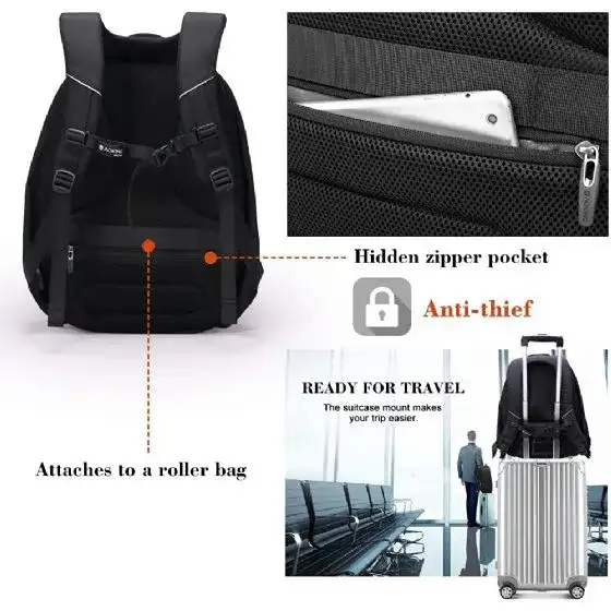 •תיק גב נגד גניבות עם הגנה חזקה מחומר PVC מקדימה , מאפשר לך ללכת ללא פחד ולא משנה מה מזג האוויר - הציוד שלך תמיד יהיה מוגן - הרוכסנים, הכיסים וכל מקורות האחסון מופנים כלפי פנים, מה שלא מאפשר לשום גנב לשלוח ידיים ובכך אין לאיש גישה לרוכסנים אלה כל עוד התיק צמוד לגב.מחיר רגיל: ILS 179.00