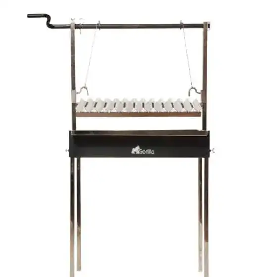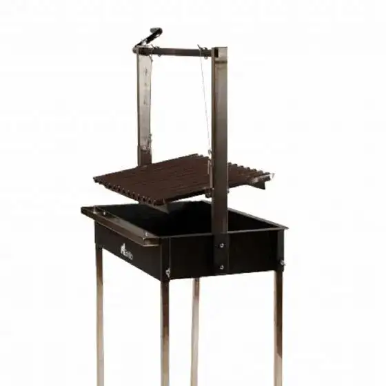 גריל ארגנטינאי מברזל שחור עם רשת וי מתכווננת מנירוסטה