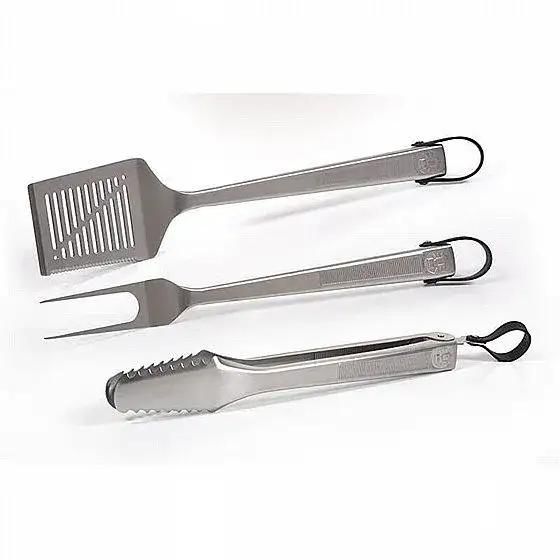 סט כלים עשויים נירוסטה איכותית, הכולל מרית, מזלג ומלקחיים. לכל הכלים ידית ארוכה לאחיזה נוחה ורצועת סיליקון לתלייה מידות (אורך): מרית: 38.5 ס"מ מזלג: 38.5 ס"מ מלקחיים: 34.5 ס"ממחיר רגיל: ILS 179.00
