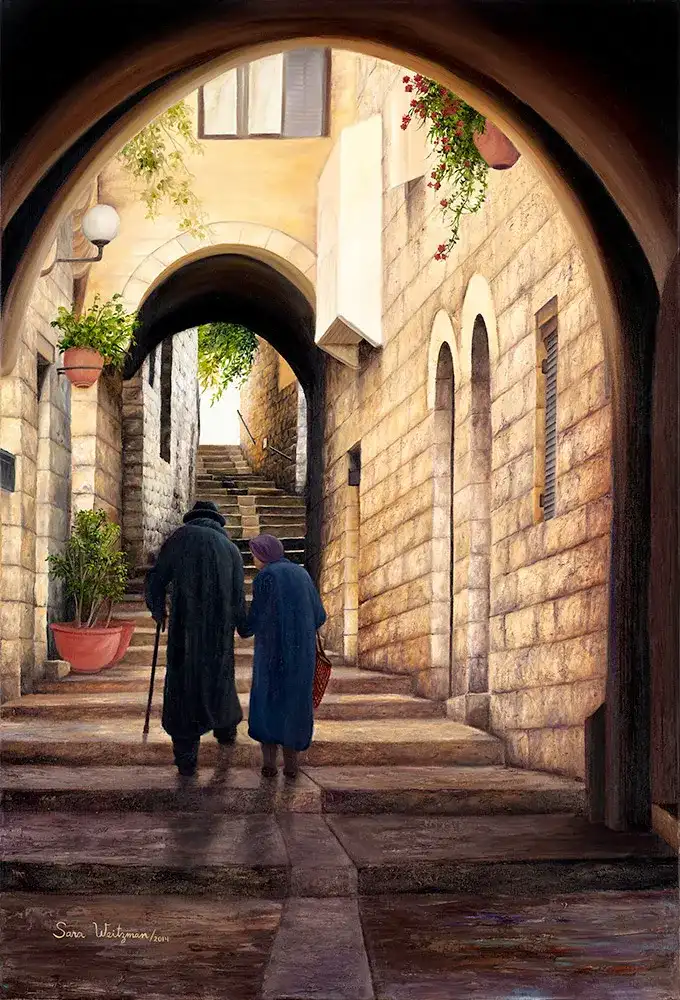 העתק זוג זקנים במעלה הרובע - שרה וייצמן