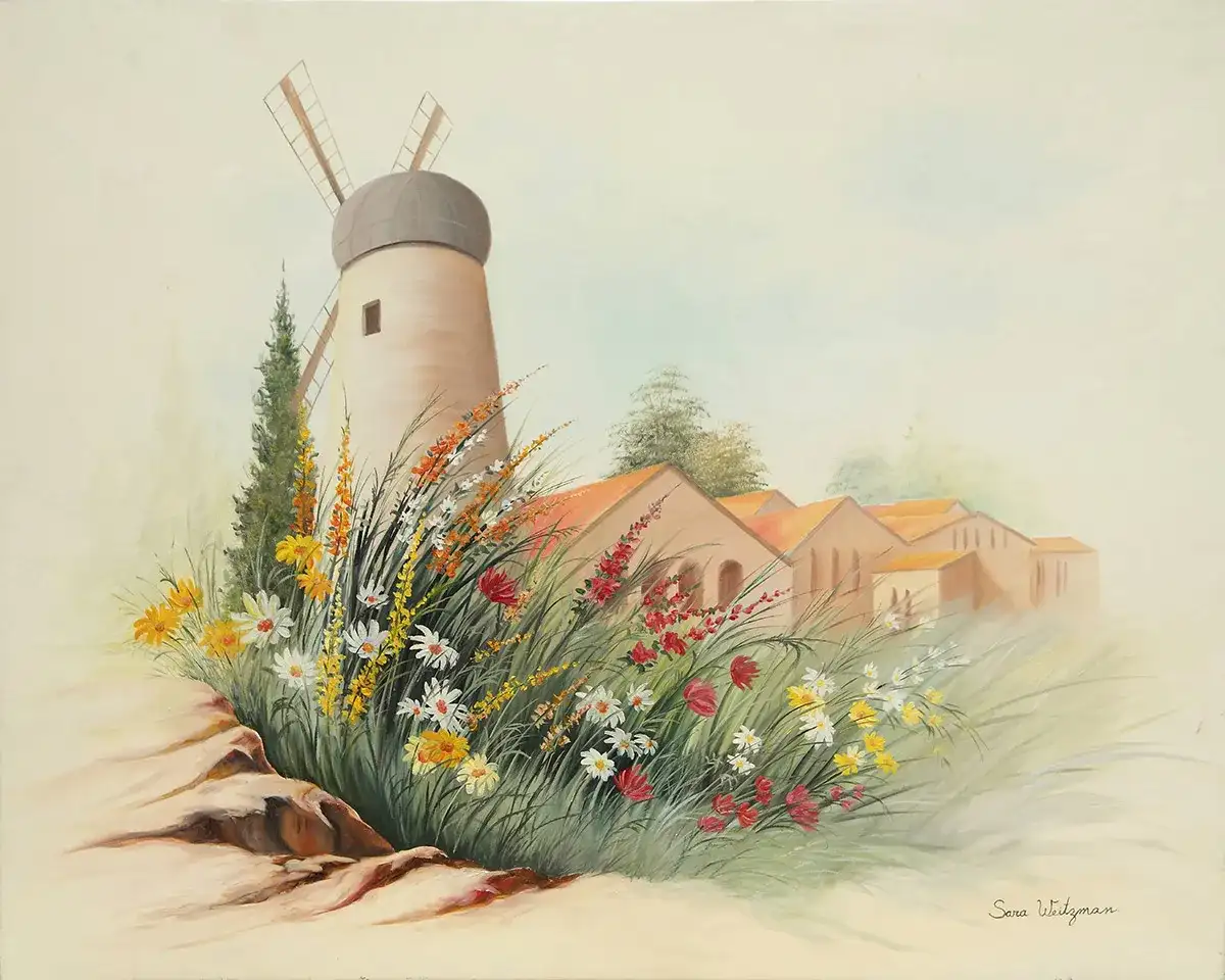 העתק הטחנה על רקע הפריחה - שרה ויצמן