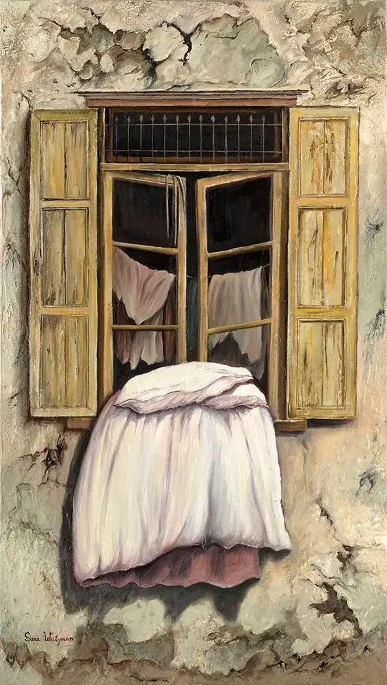 העתק של היצירה אוורור בחלון מאת האמנית שרה ויצמן. ציור מרהיב בגוונים חמים ומרהיבים שישדרג כל חלל ביתי או משרדי. עבודת אמנות מודרנית ומיוחדת בעיצובה. מתאים כמתנה איכותית ויוקרתית לכל אדם אוהב אמנות ויופי. יחס הציור הינו 1.75 ניתן להזמין בתיאום אישי בכל גדמחיר רגיל: ILS 1500.00